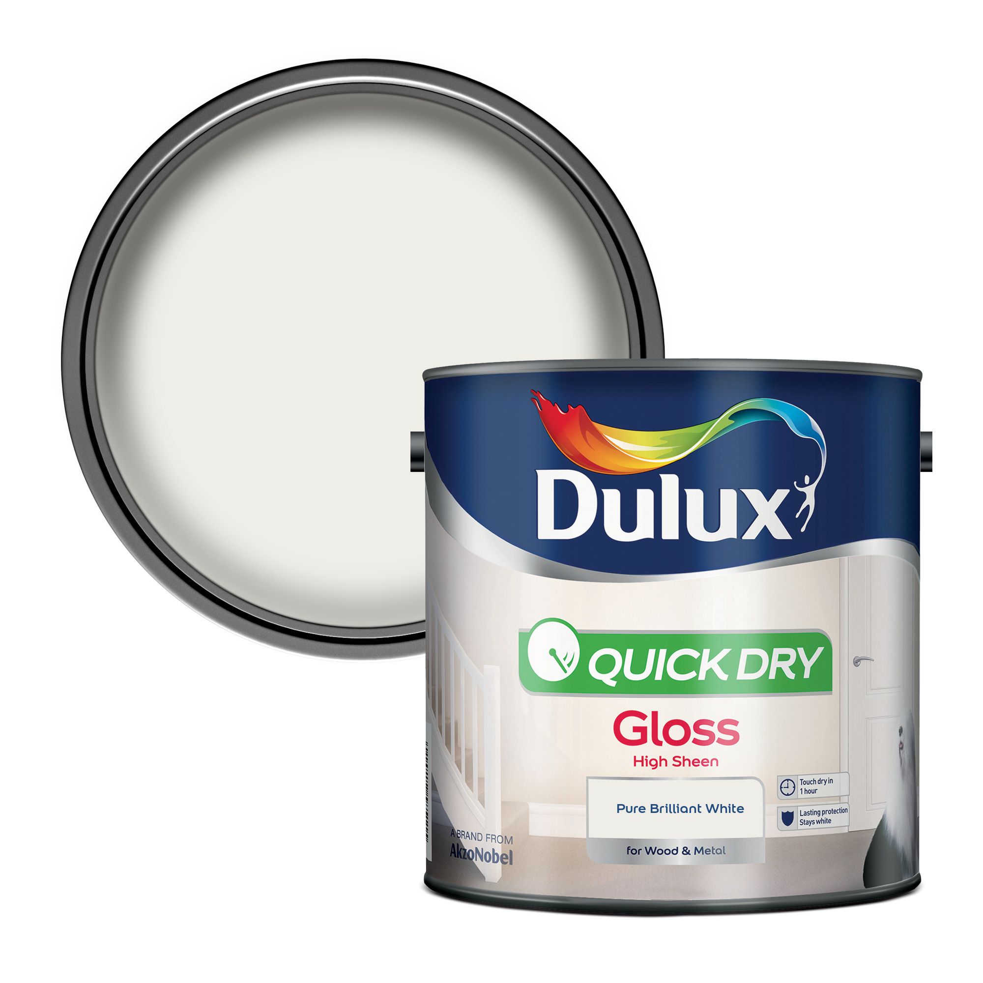 Dulux Quick Dry Pure Brilliant White Gloss Metal Wood Paint 2 5l Diy At B Q